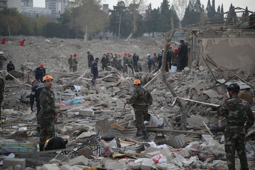 وأظهرت الصور التي نشرتها أذربيجان عمال الإنقاذ وهم يبحثون عن ناجين بين أنقاض المنازل المدمرة. وتحدثت السلطات عن أضرار كبيرة.