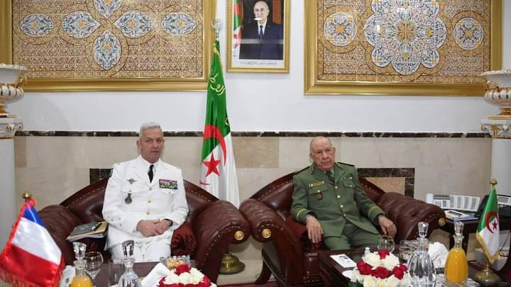 استقبل السيد الفريق السعيد شنڨريحة، رئيس أركان الجيش الوطني الشعبي، هذا اليوم الخميس 08 أفريل 2021، بمقر أركان الجيش الوطني الشعبي، الفريق أول فرانسوا لوكوانتر، رئيس أركان الجيوش الفرنسية.