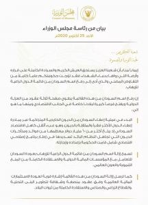 و كان السودان قد أعلن الجمعة تطبيع علاقاتها مع الاحتلال الصهيوني و”إنهاء حالة العداء بينهما”، وفق ما جاء في بيان ثلاثي صادر عن السودان والولايات المتحدة وإسرائيل نقله التلفزيون الرسمي السوداني.