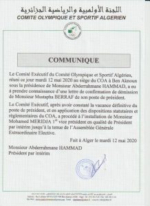 هذا وجاء تعيين “مريجة” على رأس اللجنة الأولمبية بالنيابة مؤقتا، إلى غاية عقد الجمعية العامة الإنتخابية.