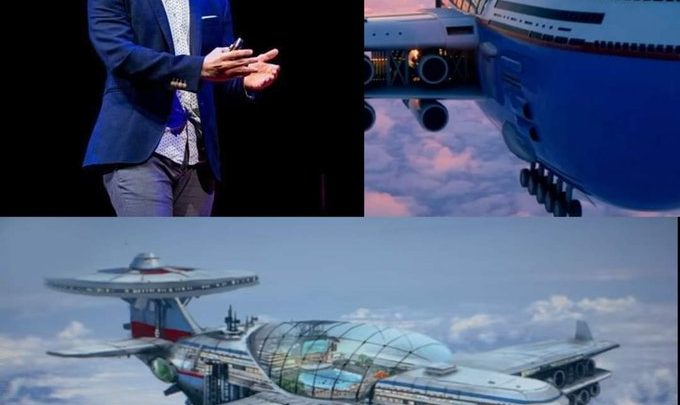 طائرة عملاقة بشكل فندق تعمل بالطاقة النوويىة للمخترع اليمني هاشم الغيلي