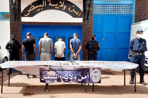 تمكنت عناصر الشرطة القضائية أمن ولاية البيض، من إلقاء القبض على شبكة إجرامية تقوم بالمتاجرة بالمؤثرات العقلية ، وأوضح بيان مصالح الأمن أن العملية جاءت بناء على تحريات ميدانية قامت بها عناصر فرقة مكافحة الاتجار غير الشرعي للمخدرات ، مفادها وجود 03 أشخاص تتراوح أعمارهم ما بين 25 و35 سنة كانوا بصدد عقد صفقة بيع كمية معتبرة من المؤثرات العقلية ، حيث تم بعد ذلك تنفيذ خطة عمل محكمة أين تم توقيفهم وحجز 6360 كبسولة من المؤثرات العقلية نوع (البريغابالين ) 300 ملغ أجنبية الصنع ومبلغ مالي من عائدات الترويج مقدر ب : 130 ألف دينار ومركبة تستعمل في النشاط الإجرامي .