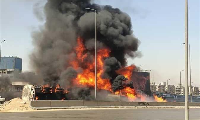 من جهته صرح مصدر أمني أنه وقع صباح اليوم الموافق 8 الجاري حادث مروري أعلى الطريق الدائري في الإتجاة القادم من التجمع إلى المنيب، مما أدى إلى إنقلاب إحدى سيارات نقل المواد البترولية، وإشتعال النيران بالسيارة، وإمتدادها لعدد من السيارات المتواجدة بالطريق.