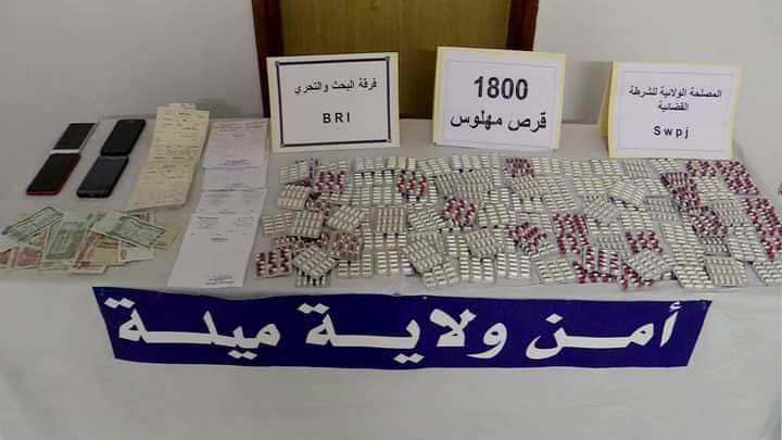 تمكنت مصالح أمن ولاية ميلة، اليوم الأحد، من توقيف شبكة إجرامية تتاجر بالمؤثرات العقلية تتكون من 6 أشخاص كما تم ضبط بحوزتهم 1800 قرص مهلوس .