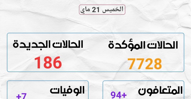 186 إصابة جديدة و7 وفيات بفيروس كورونا