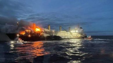حريق ضخم بسفينة شحن قبالة هولندا
