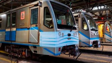قطار في موسكو يحمل في مقدمته رسم كمامة طبية